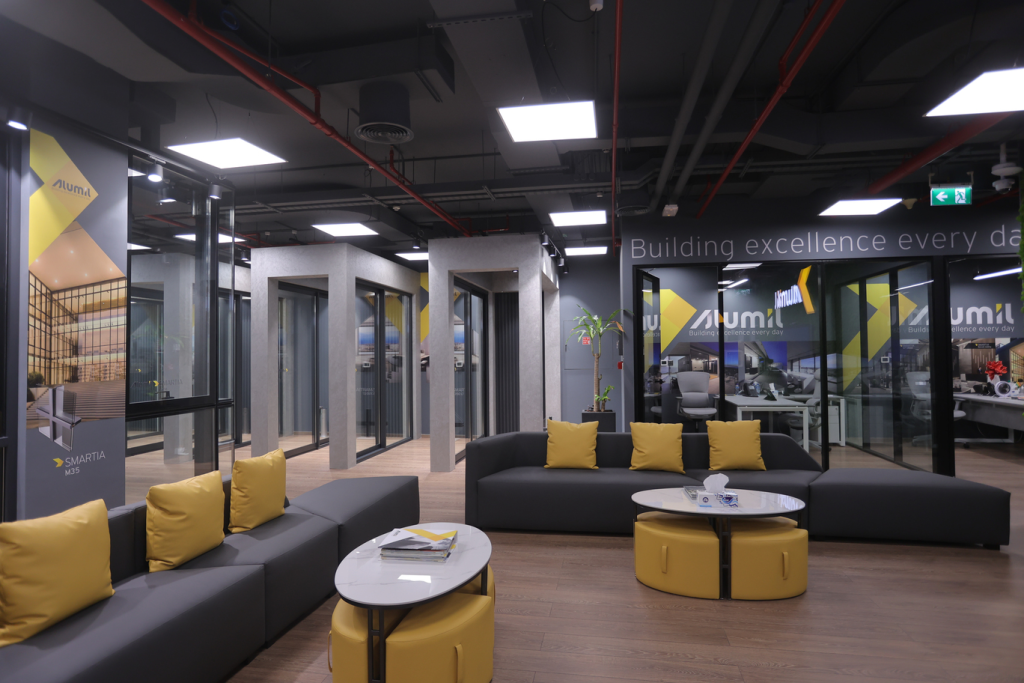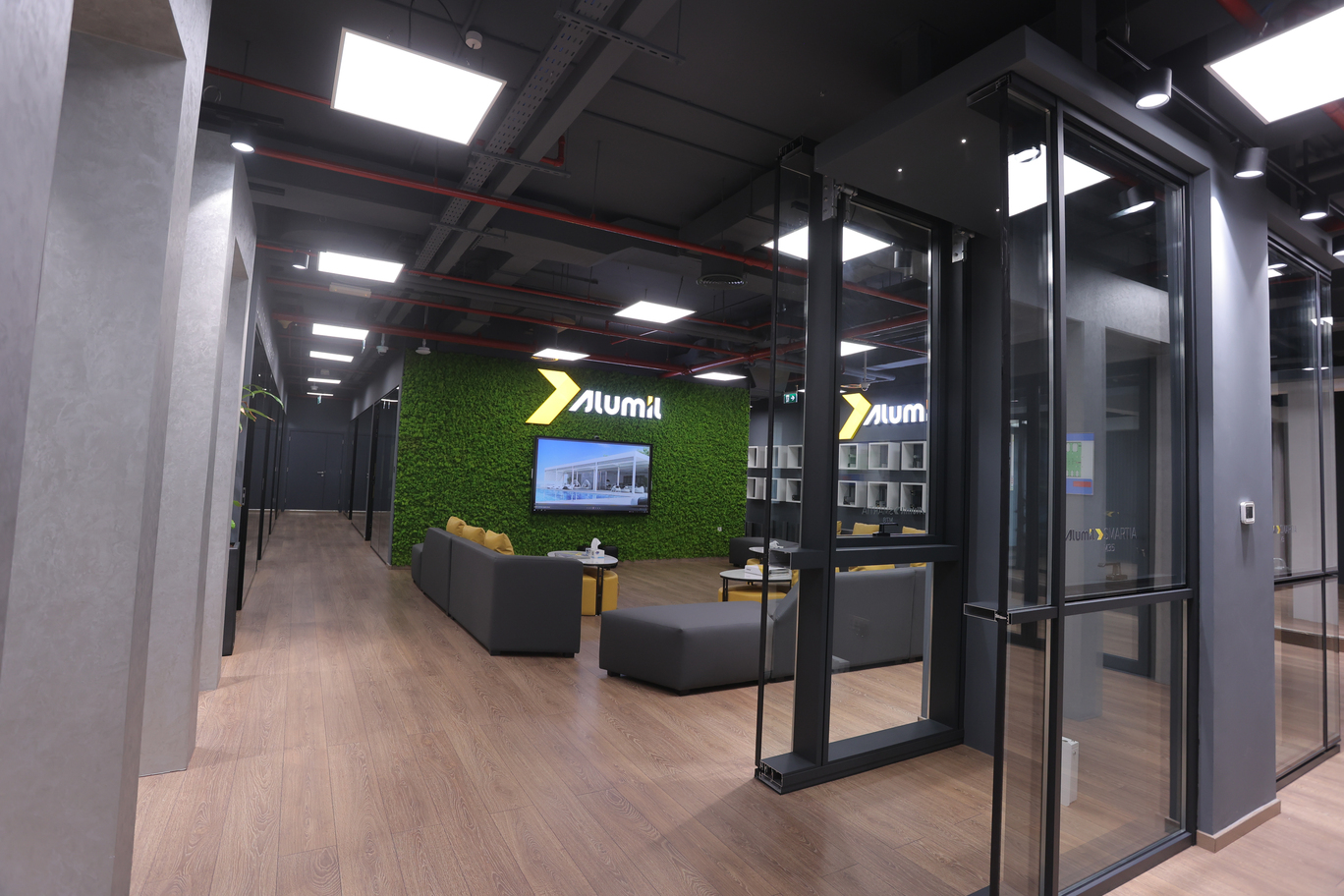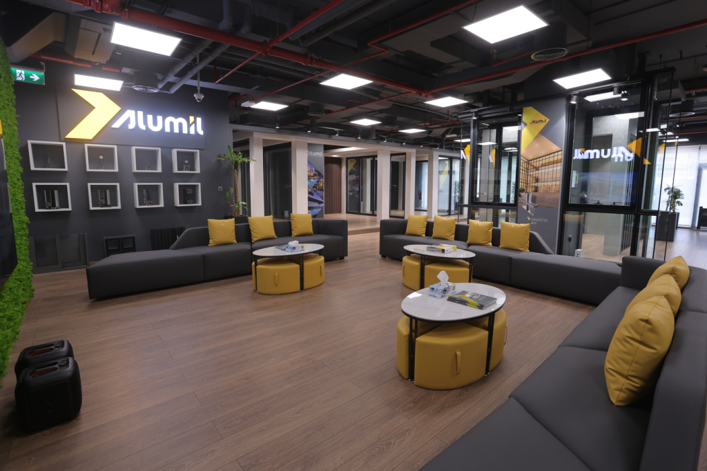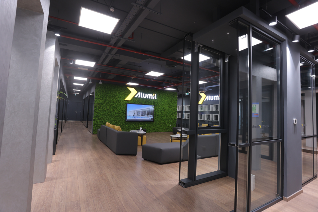A bespoke corporate space for Alumil, designed to showcase innovation and functionality. The interiors highlight modern design elements, efficient layouts, and a professional atmosphere that reflects the brand’s global standards.