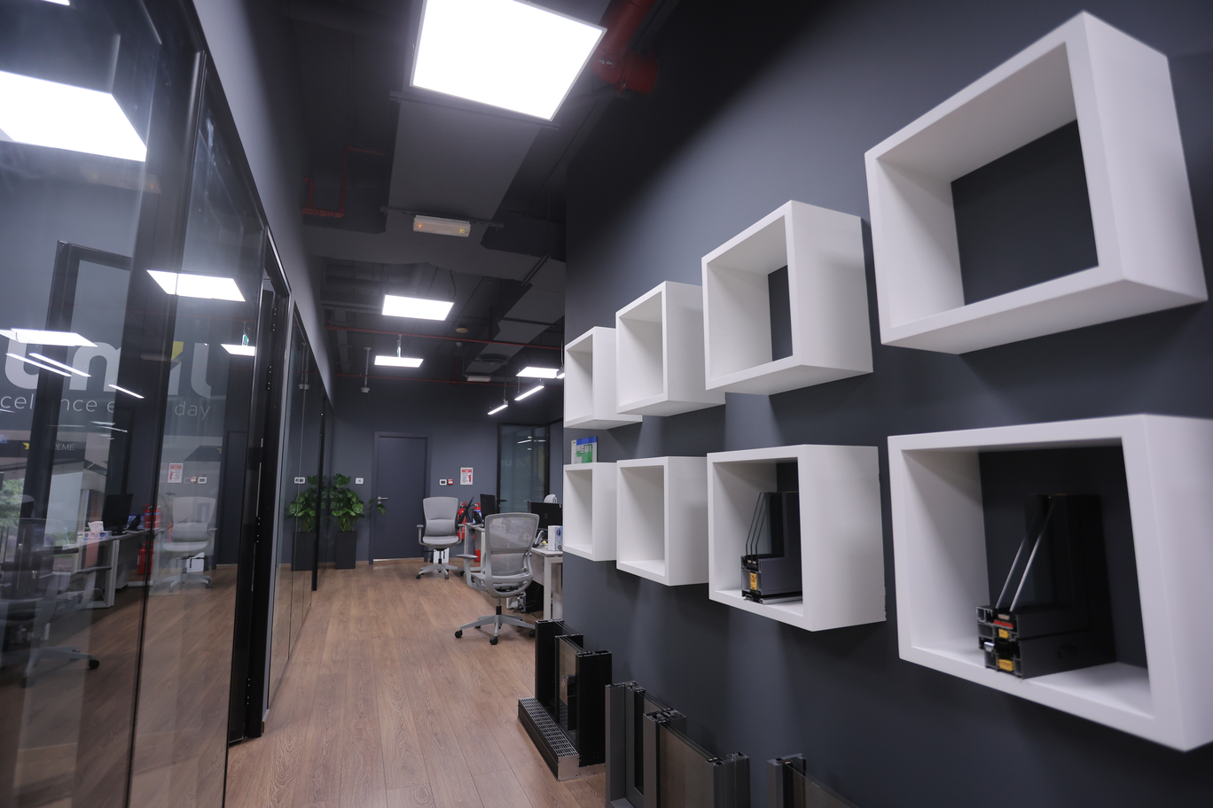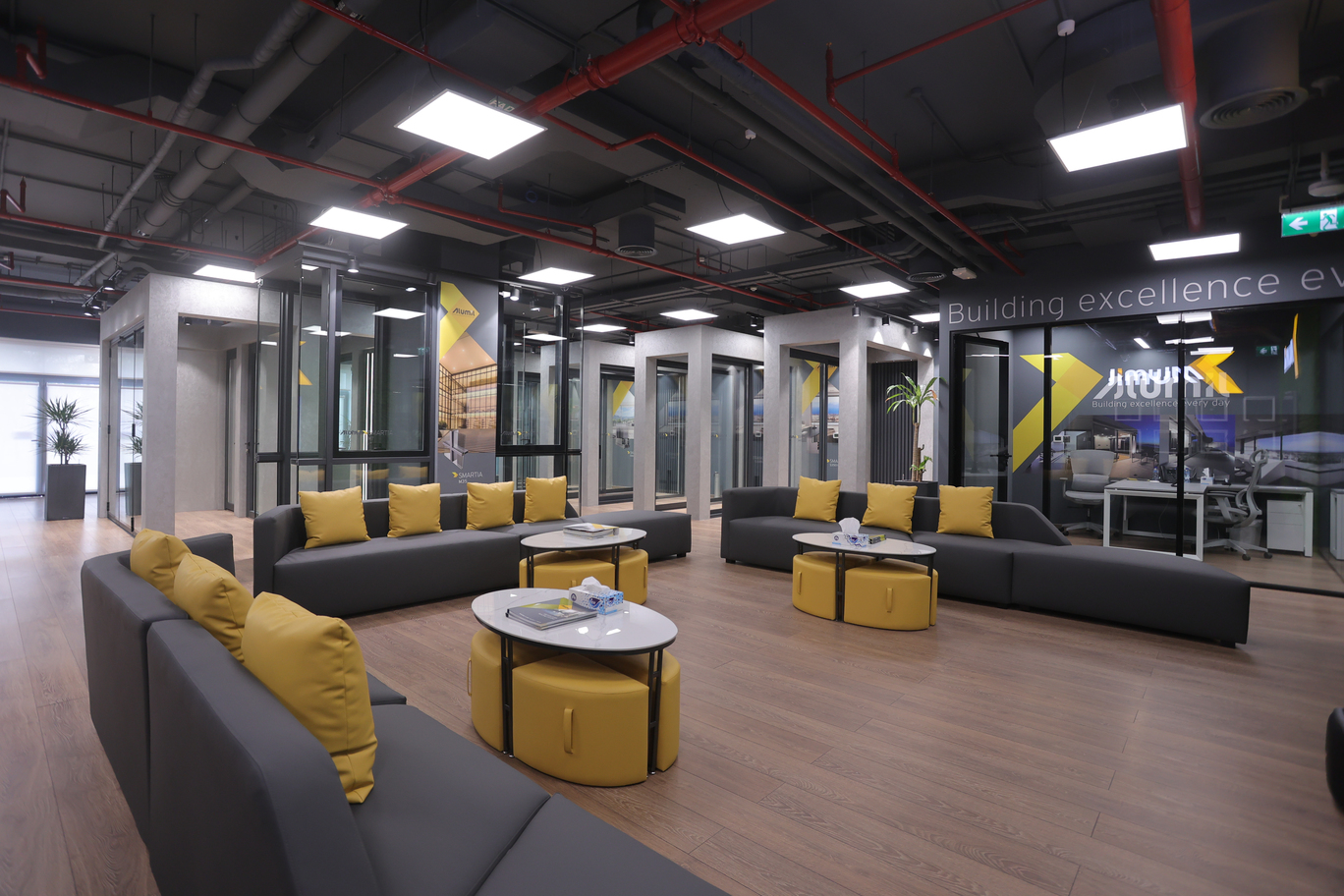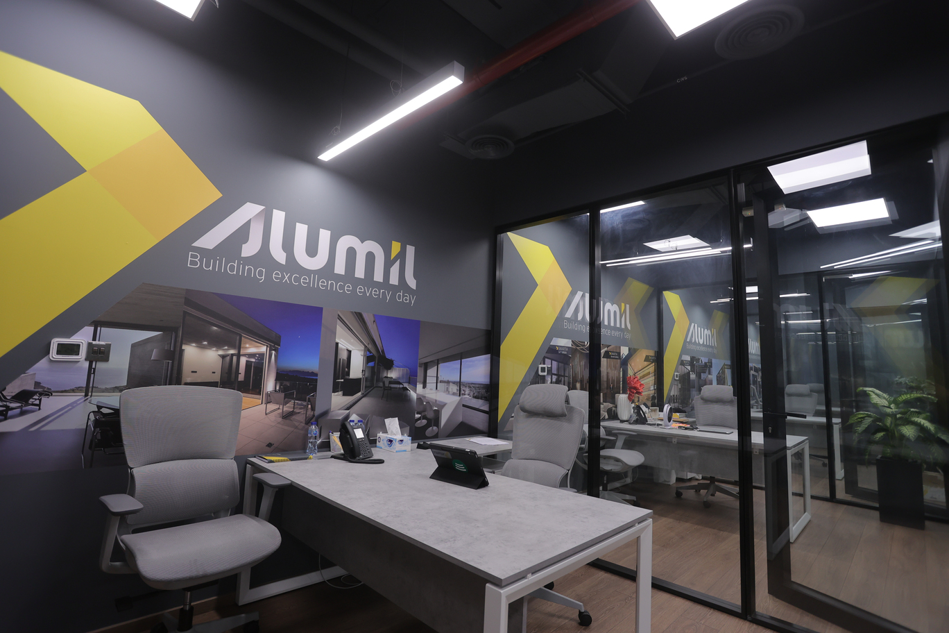 A bespoke corporate space for Alumil, designed to showcase innovation and functionality. The interiors highlight modern design elements, efficient layouts, and a professional atmosphere that reflects the brand’s global standards.